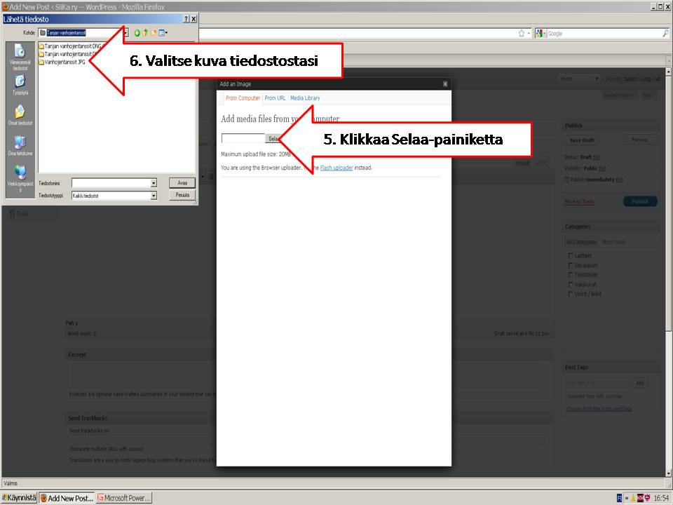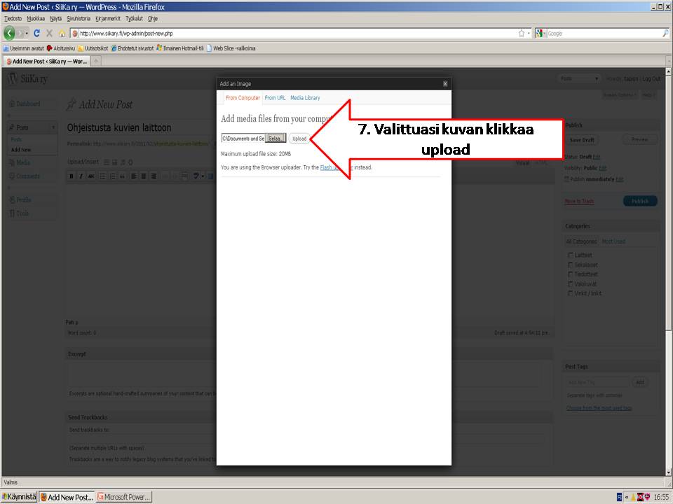 Kohdassa 5 valitaan ensin käyttöön ”Flash uploader”.