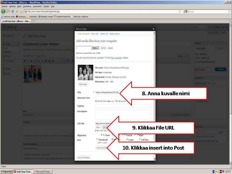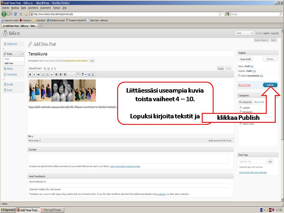 Hienoa, Tapsa! Kyllä tämän ohjeen avulla pitäisi postauksien ruveta kaikilta onnistumaan.